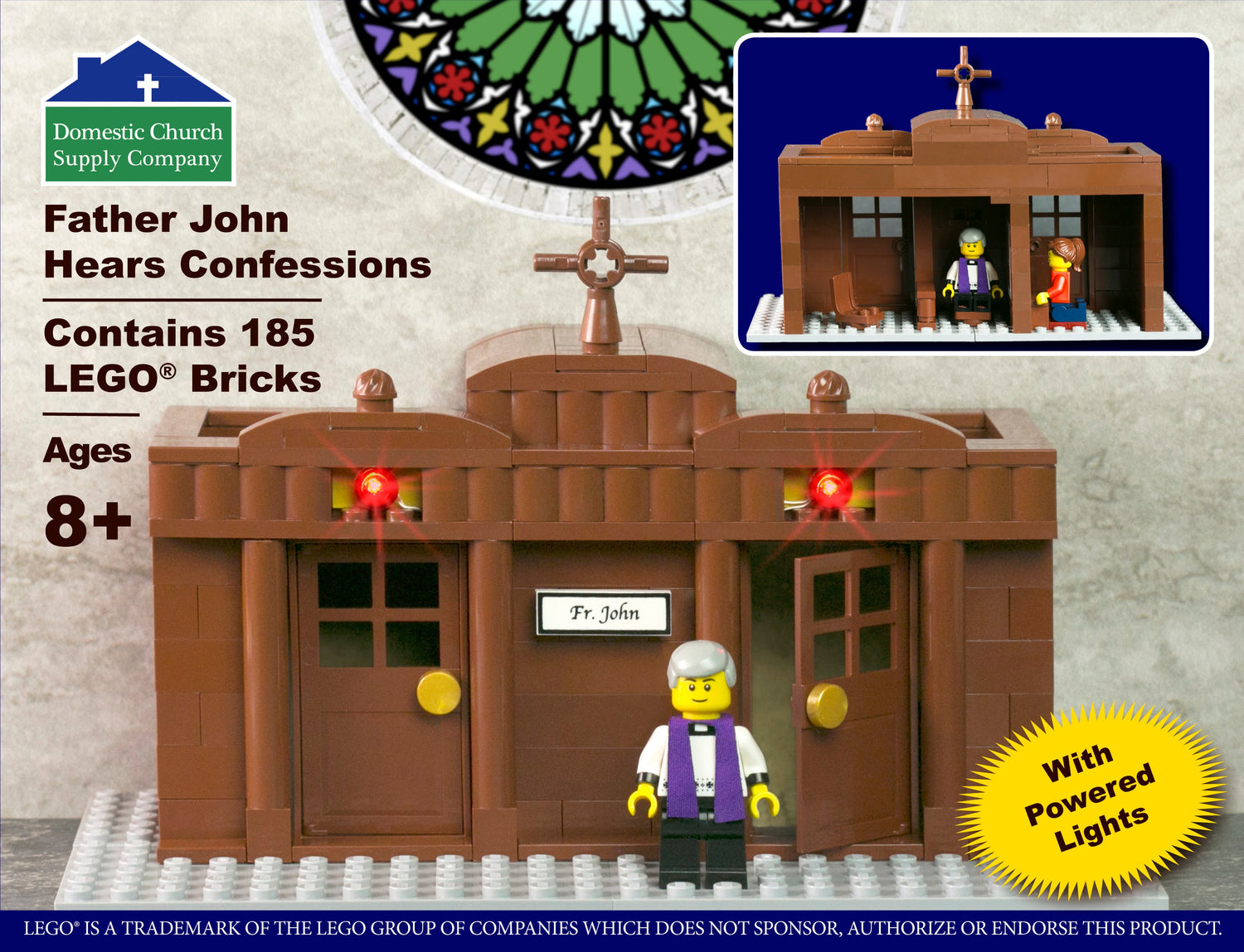 Who knew confession could be so much fun? This set includes 185 LEGO bricks, and lights over the confessional doors that really light up. Go face to face, or behind the screen, and turn your minifig's tears into a smile when he comes out of the box.